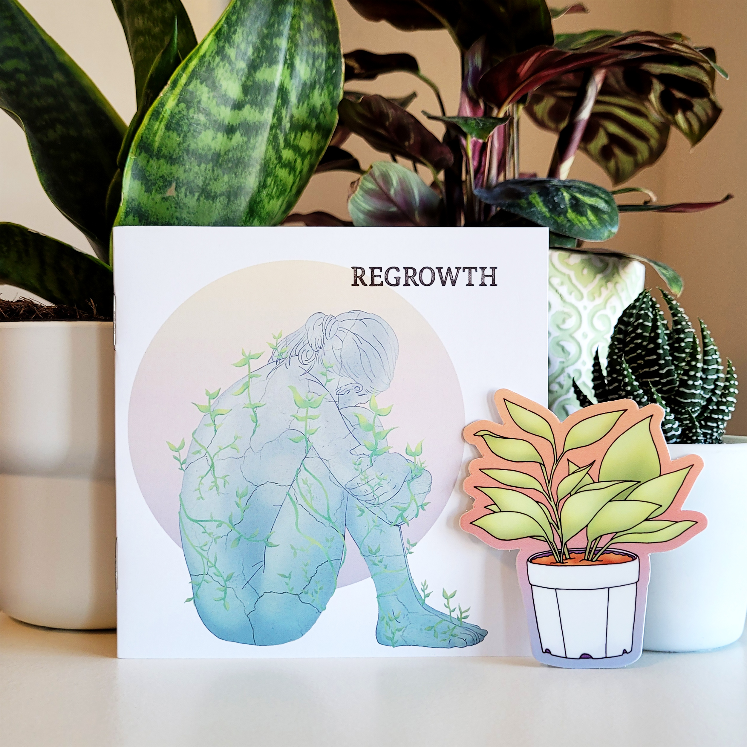 Regrowth is a short comic is about how trauma isn’t just something that one overcomes on the road to personal character development, but rather a significantly transformative experience with lingering aftereffects. I wanted to illustrate how difficult it is to cope with trauma, but how it’s also an opportunity to grow and change.