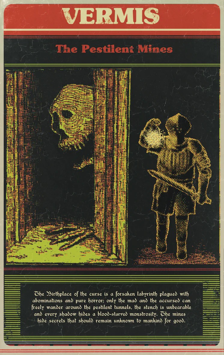 Before attempting to describe what this book is, perhaps it might be useful to describe what it isn’t. First, Vermis is entirely original. Although the tenor of its world will be familiar to fans of Dark Souls and FromSoft’s earlier King’s Field series of dungeon crawlers, there are no callbacks or veiled references or tongue-in-cheek jokes about how “it’s dangerous to go alone.” Vermis is entirely its own thing.