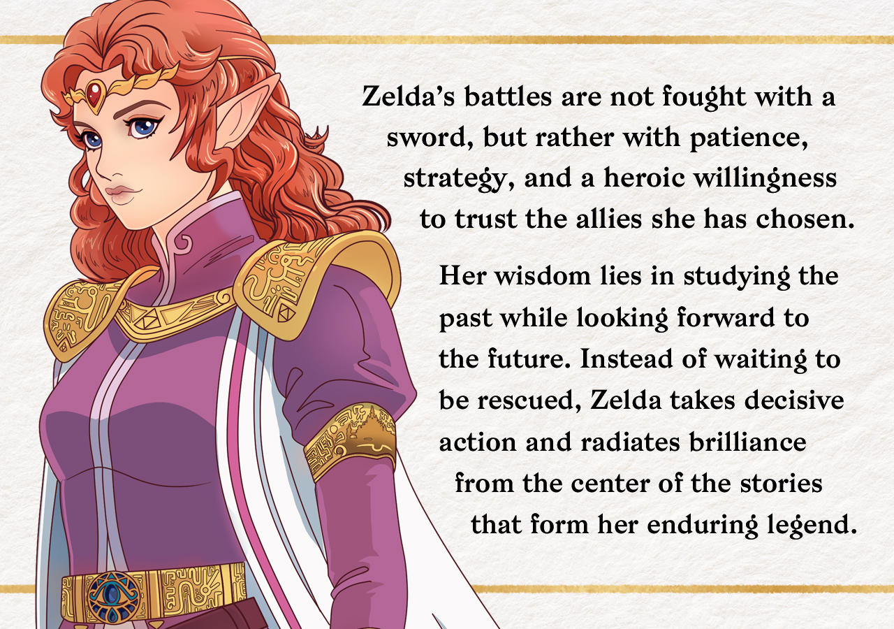This original design for Princess Zelda was created by Hollarity, who put an incredible amount of love and care into portraying the character as a courageous young woman who is fully capable of going on her own adventures. You can find more of Holly’s gorgeous artwork on her website (here).