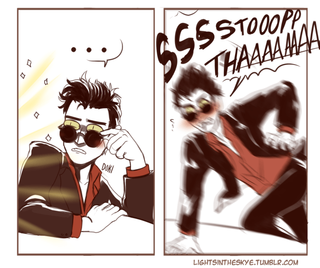 This comic was drawn by Frankiesbugs (@frankiesbugs on Tumblr) and written by me, Kathryn Hemmann (@kathrynthehuman on Twitter).