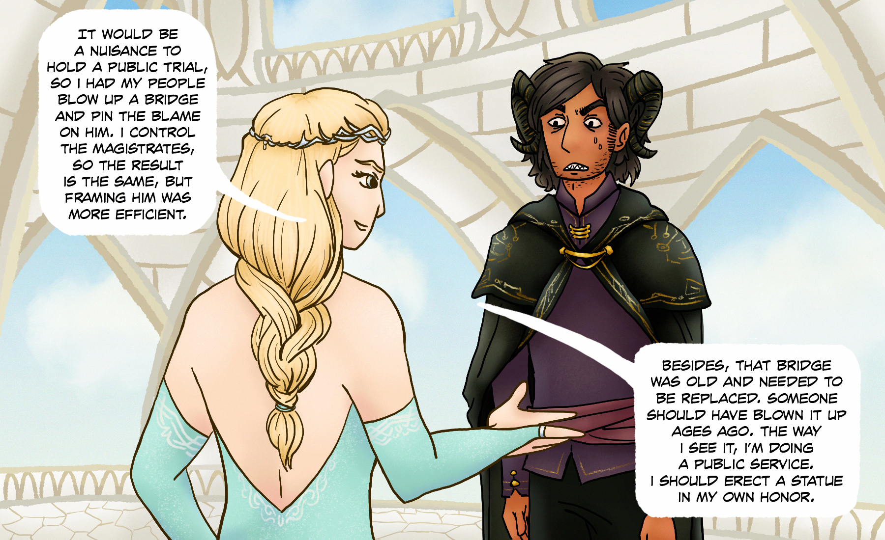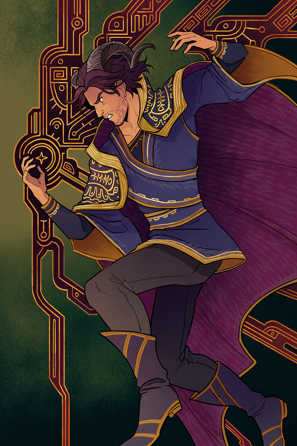 As well as going back in time, Ananth is able to jump forward into the future. There are a number of limitations and caveats to what his magic can achieve, however; and, on top of that, he’s a normal person with no magical training. Through extensive trial and error, he’s realized that his best bet for preventing the apocalypse is to steal the keystone from Whitespire and return to the past with it, where he could hopefully use its power to cancel out the initial magical chain reaction.