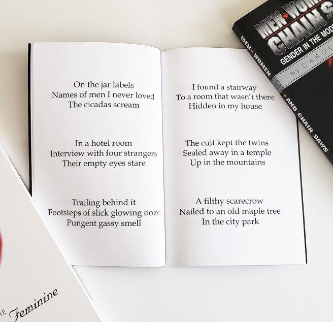 In the spring of 2014, I made a half-letter size photocopied zine that collected thirty horror-themed haiku. I had so much fun putting it together that I made a second issue the very next week. I was teaching at Notre Dame that year and driving to Chicago practically every weekend to stay sane, and I spent a lot of time at Quimby’s Bookstore in Wicker Park. I took a handful of zines to Quimby’s to ask if they would take them on consignment, and they agreed. This turned out to be an incredibly transformative experience for me.